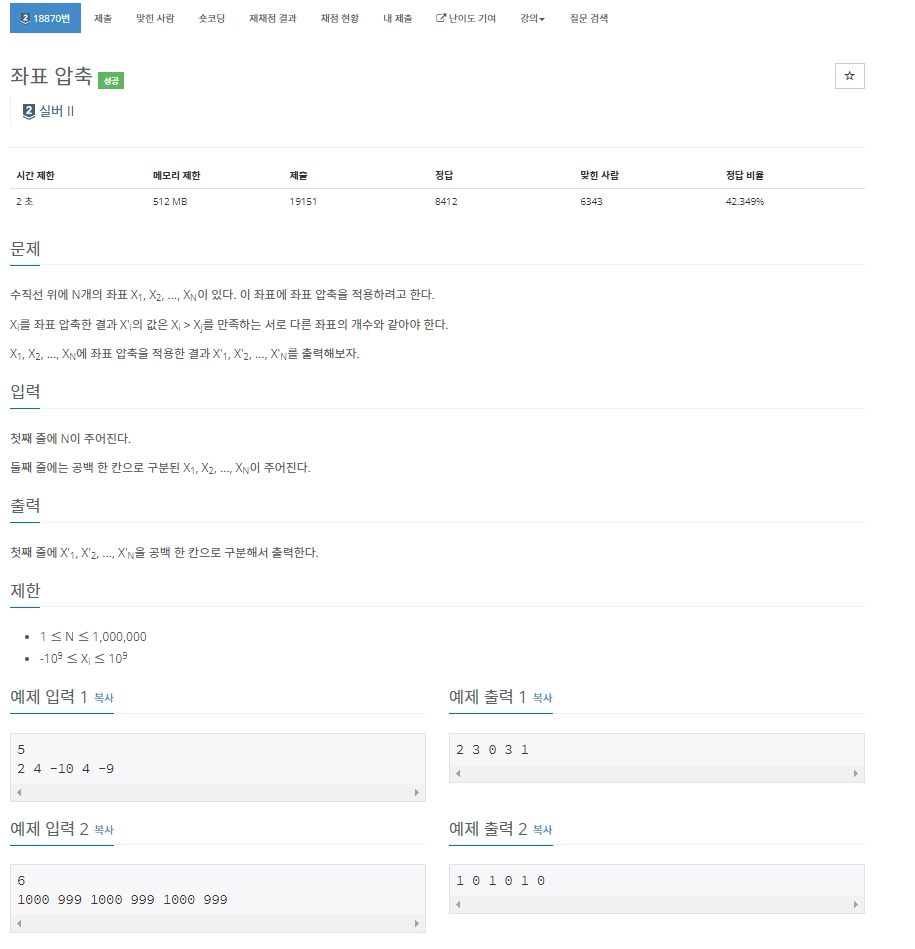 18870번: 좌표 압축