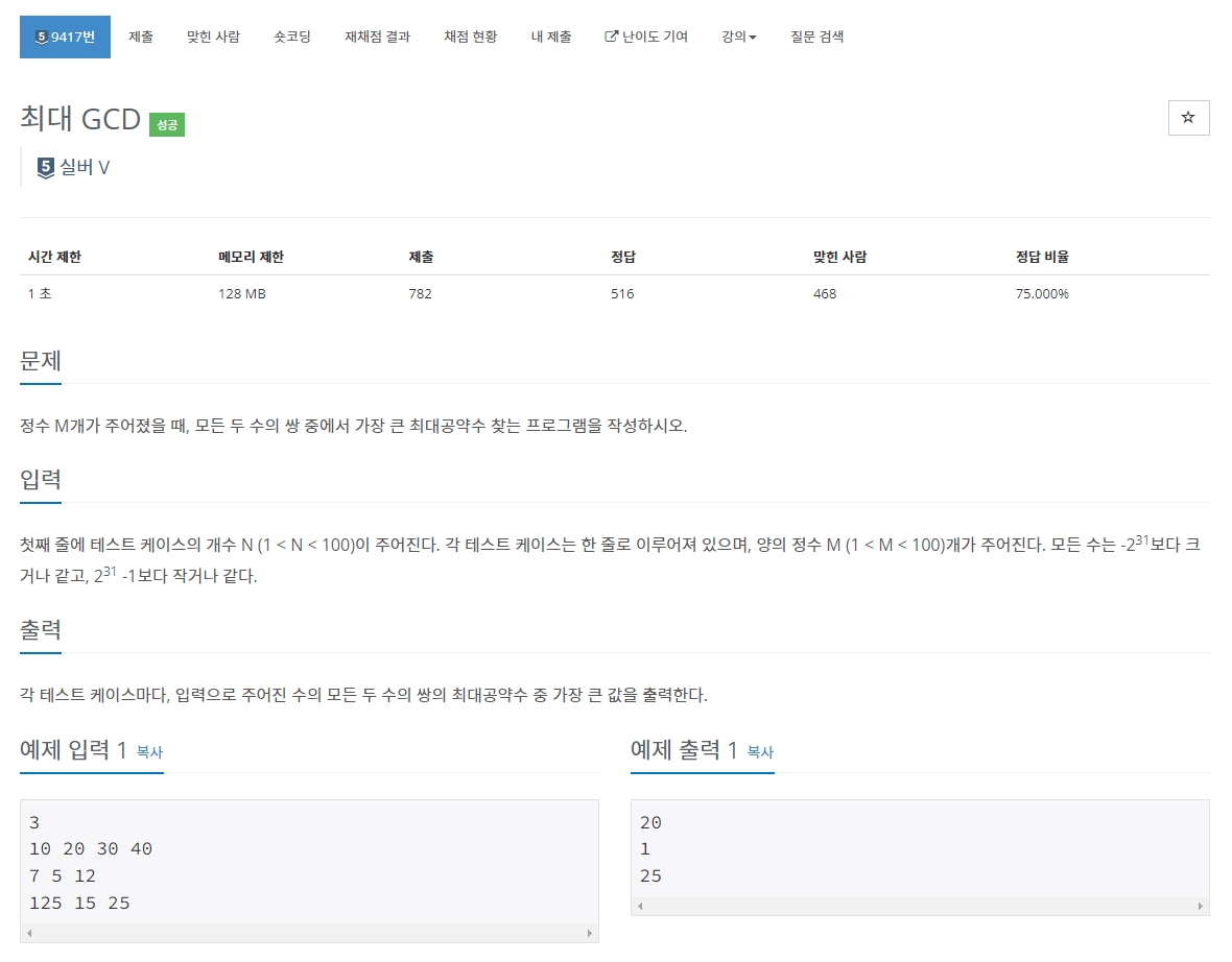 9417번: 최대 GCD