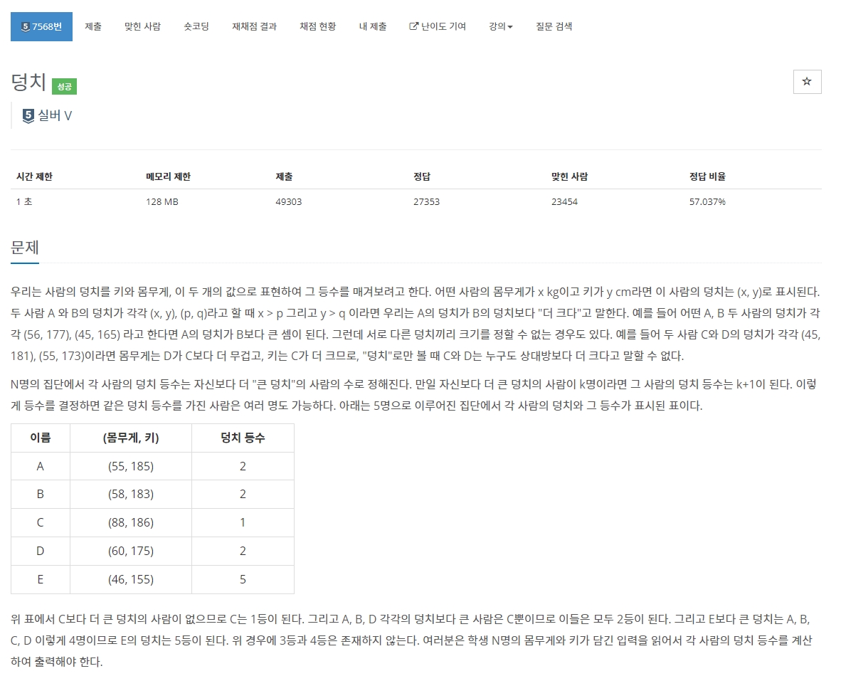 https://www.acmicpc.net/problem/7568