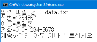 printf("데이타 파일 명 : "); scanf("%s", filename);