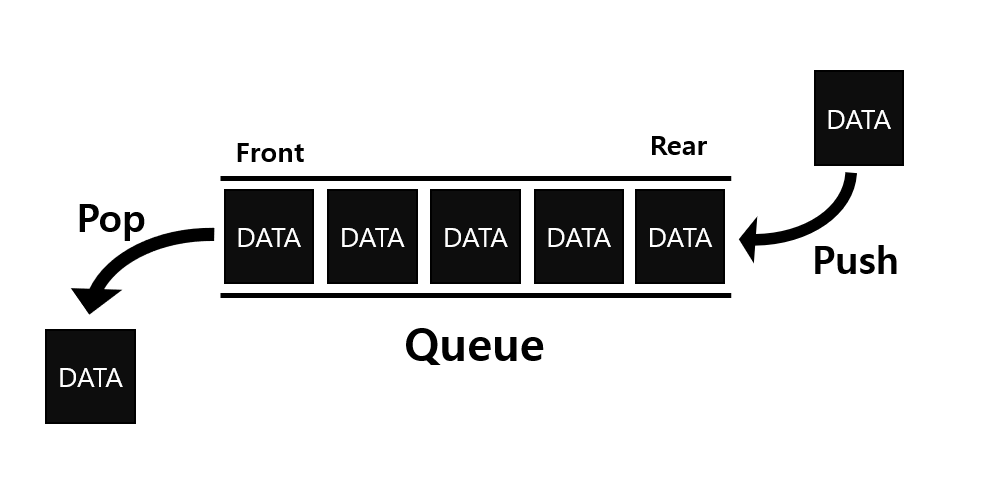 큐(queue)는, 영어단어인 queue라는 단어의 뜻에서도 이러한 의미를 가지는데, 대기 행렬, 줄이라는 뜻을 가진다. 먼저 줄선 사람이 먼저 나가듯이, queue라는 뜻 자체가 선입선출의 의미를 갖는다고 볼 수 있다.