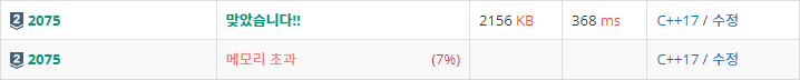 | 백준 1697번 C++ 풀이 (0) | 2022.07.27 |