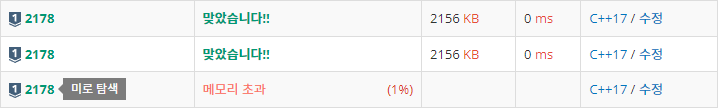만약 bfs로 풀었을 때, 메모리 초과가 났다면, 방문처리를 queue에 push하면서 해줘야 한다. 이거 까먹었다가 메모리초과나서 한참을 고민했다.