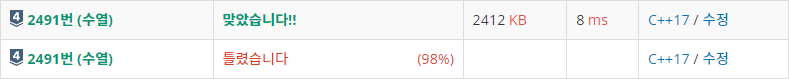 2491번: 수열