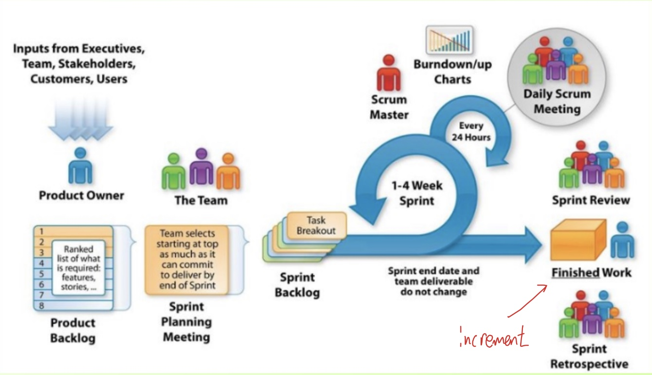 - sprint가 끝나고 잠재적으로 출 시할 수 있는 제품을 increment라고 한다.