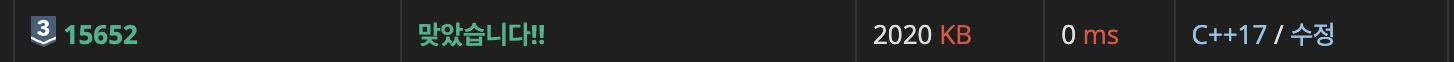 | 백준 15650번 C++ 풀이 (0) | 2025.01.16 |