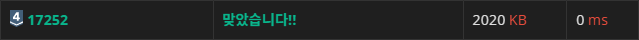 | 1초 | 256MB | 17252번 (삼삼한 수) : 실버 4 17253번 (삼삼한 수2) : 실버 3 |