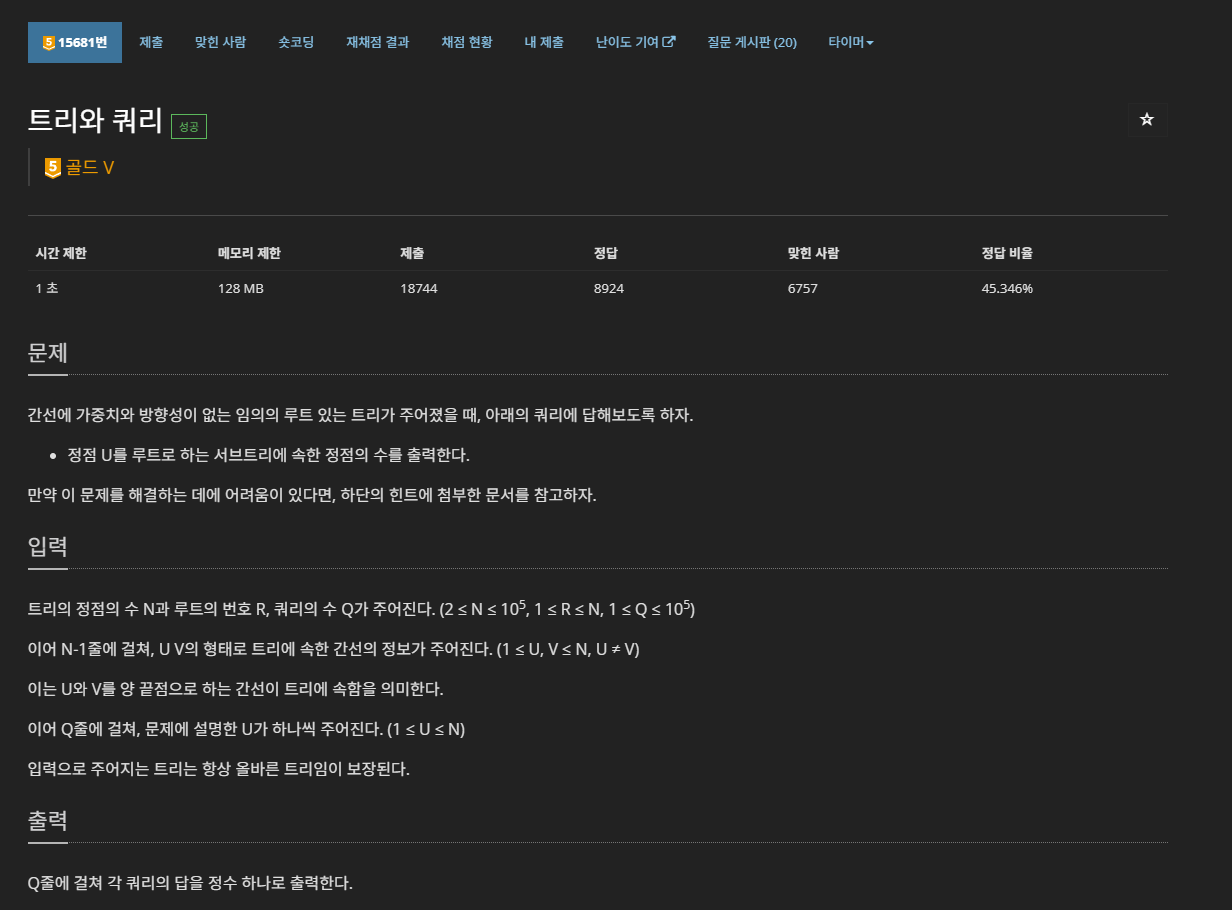 https://www.acmicpc.net/problem/15681