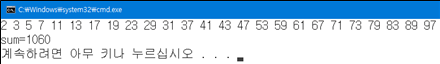 void main() // 2 ~ 100 소수 찾아서 출력하고 더하기