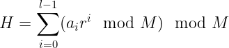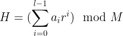 hash += ((str[i] - 'a' + 1) * R) % M; hash %= M;