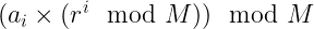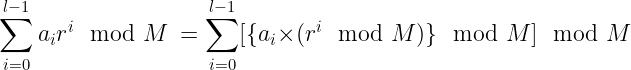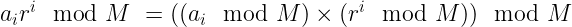 이제 안쪽의 모듈러 연산에 곱셈의 분배법칙을 적용하면 다음과 같다.