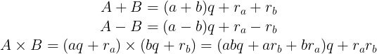 이제 A + B, A - B, A × B는 다음과 같이 표현된다.