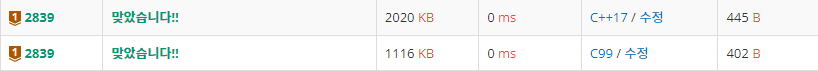 | 백준 9012번 C / C++ 풀이 (0) | 2021.09.30 |