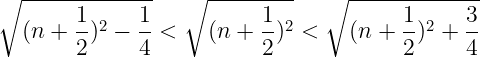 인접한 제곱수 a, b가 있다고 하자 (a < b, ex. a=4, b=9). a와 b는 동시에 홀수나 짝수가 될 수 없다. 따라서 a, b의 중앙값은 ~.5가 나오게 된다. 따라서 중앙값에 가장 인접한 두 자연수는 중앙값의 ±0.5의 값을 갖는다. 이 두 수의 제곱근 값을 살펴보자. a와 b는 같은 n값에 대해 각각 n^2, (n+1)^2로 나타낼 수 있다. 이제 다음을 증명하면 된다.