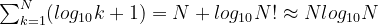 실제 숫자를 사용하니 계산과정이 복잡하다. 계산과정을 일반화를 해보며 내가 사용한 전략을 풀어보겠다. 우선 이 문제를 숫자 하나하나씩 다 세보면서 어떤 숫자가 나왔는지 세는건 주어진 시간복잡도 안에서 당연히 불가능하다. 해당 방법은 기본적으로 O(N + logN!)의 시간복잡도를 가질 것이다. 1부터 N까지 각 숫자에 대해 자릿수들을 모두 살펴봐야 하고, 어떤 자연수 k의 자릿수는 logk+1이기 때문에 이를 1부터 n까지 모두 확인하면 다음과 같은 식이 나온다.
