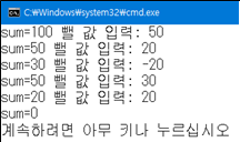 sum = 100에서 시작하여 입력받은 정수를 빼서 정확히 sum = 0이면 끝나는 프로그램을 작성하시오.
